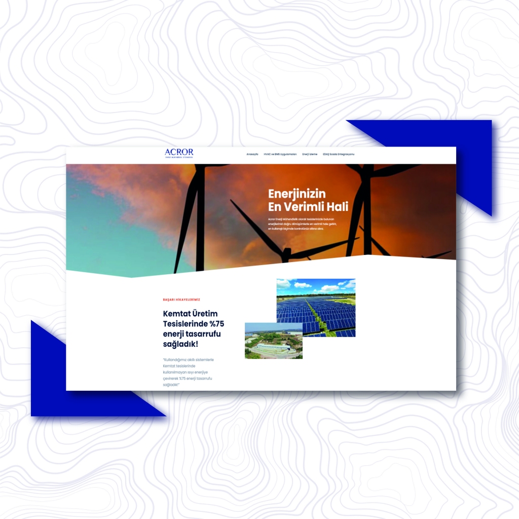 Acror Enerji Mühendislik için, açık bir şekilde sunduğu hizmetleri anlatan ve çalıştığı dünyaca ünlü iş ortaklarını ortaya çıkaran bir website tasarladık.