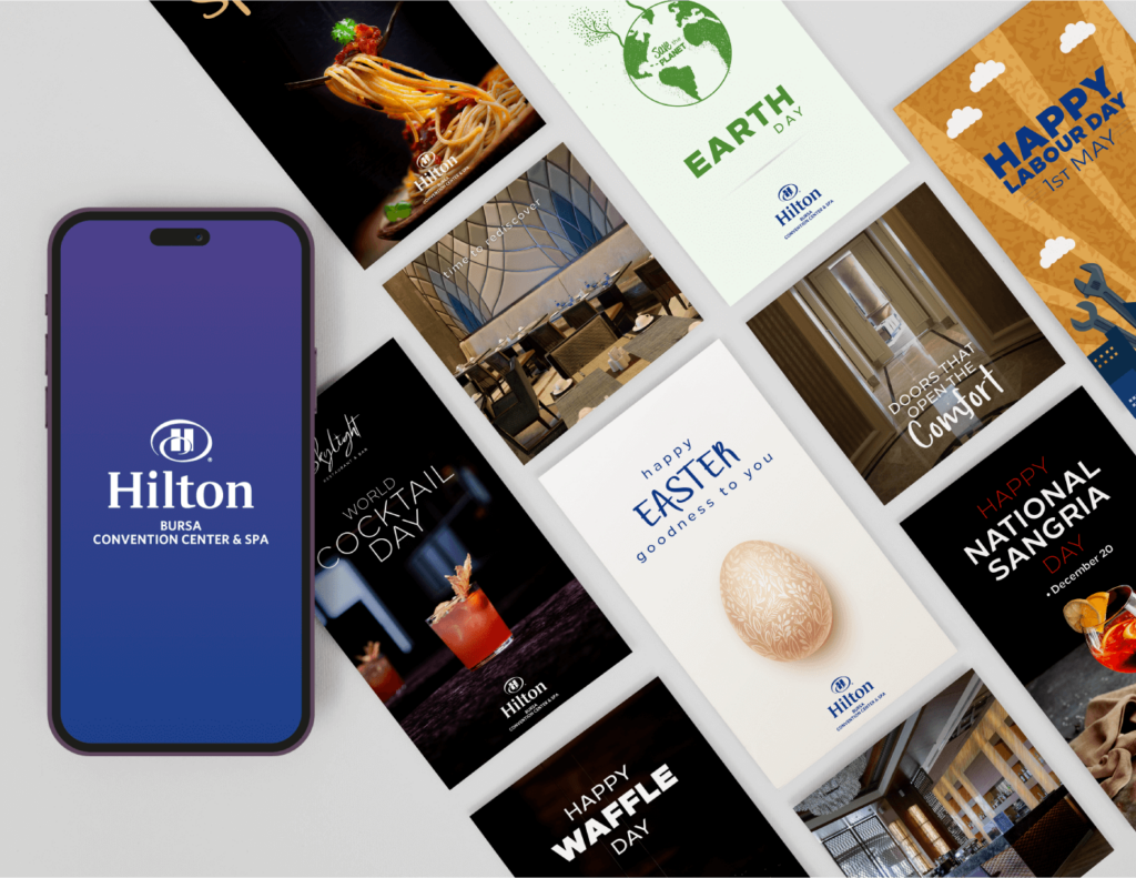 Detso Dijital Pazarlama olarak 2023 yılından itibaren Hilton Convention Center and Spa markamız için Sosyal Medya Yönetimi, Video Prodüksiyon, Mimari Fotoğraf Çekimi, Çizgi Altı Tasarım, Google Reklam Yönetimi ve Dijital Pazarlama Danışmanlığı sunmaktayız.